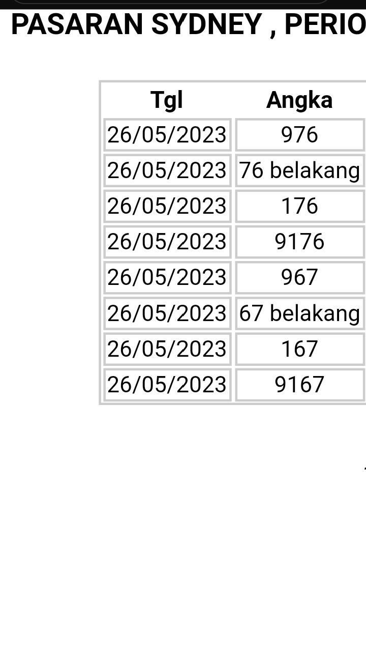 | TABEL DATA SYDNEY 6D VERSI HARIAN |