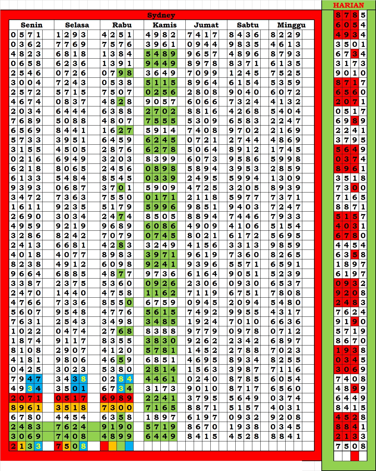 | TABEL DATA SYDNEY 6D VERSI HARIAN |