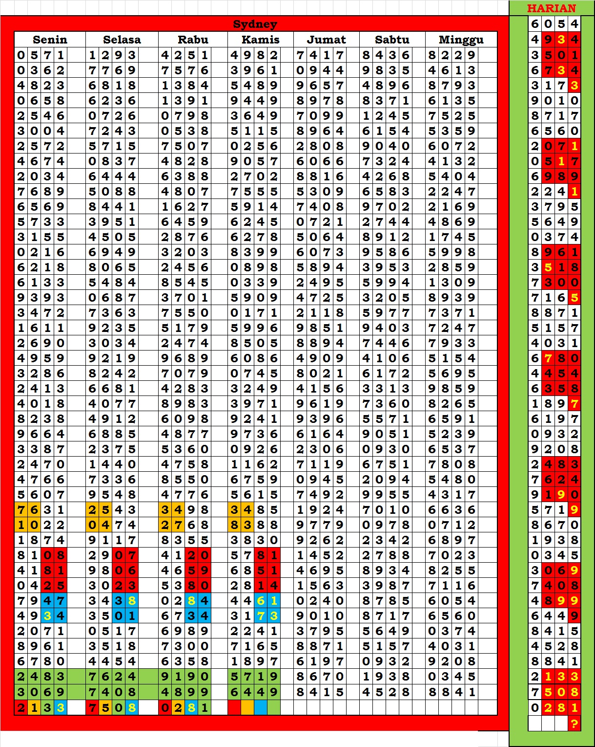 | TABEL DATA SYDNEY 6D VERSI HARIAN |