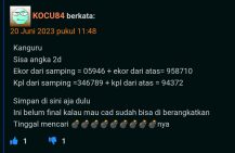 semua postingan komentar SARA, politik, saling menghujat serta saling merendahkan antara prediktor satu dengan yang lainnya jika kami lagi OL mohon maaf langsung kami hapus dan jika telah diperingatkan masih mengulang kami lock datanya