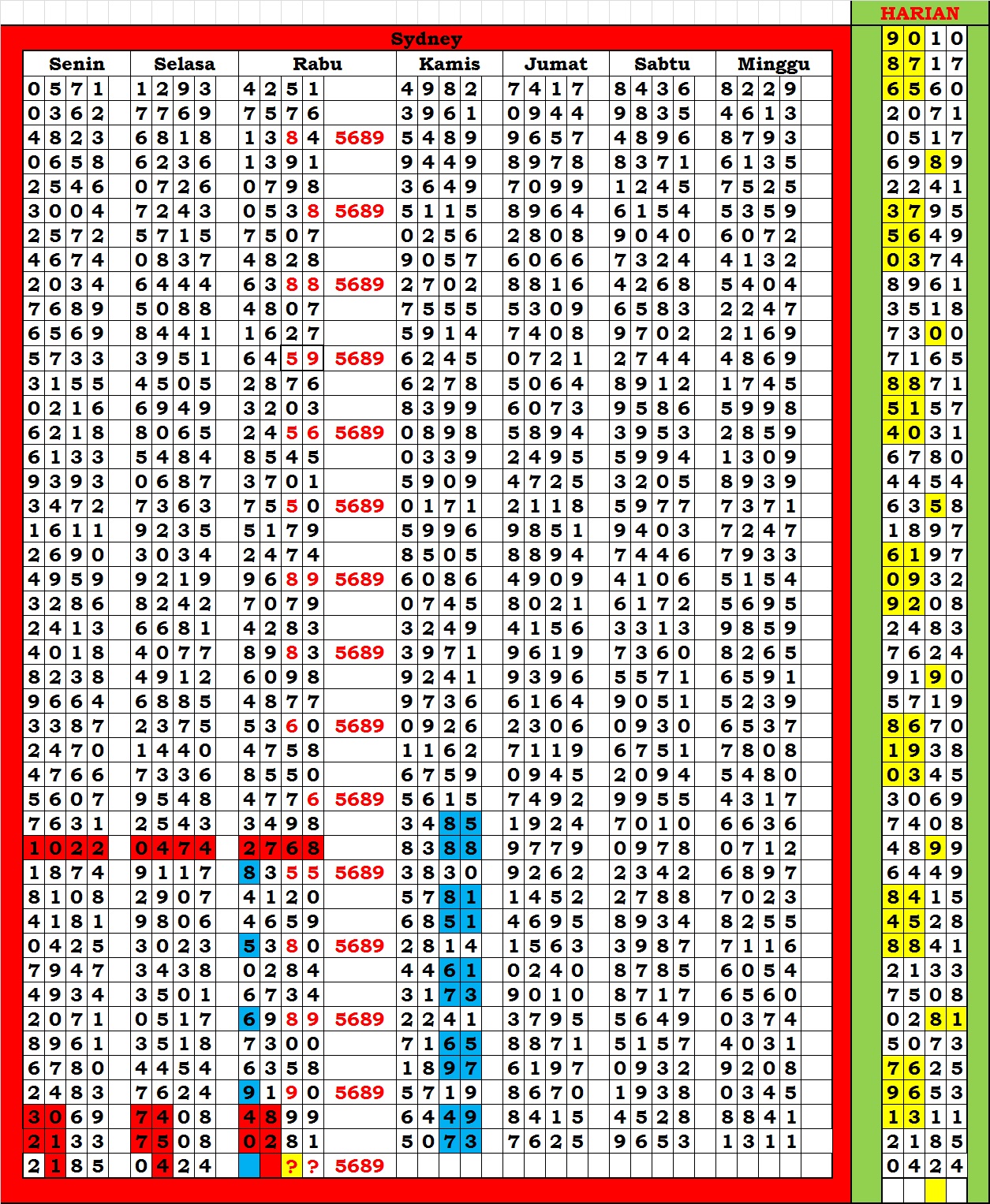 | TABEL DATA SYDNEY 6D VERSI HARIAN |
