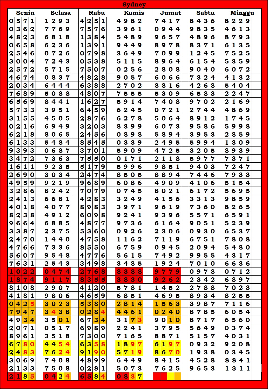 | TABEL DATA SYDNEY 6D VERSI HARIAN |