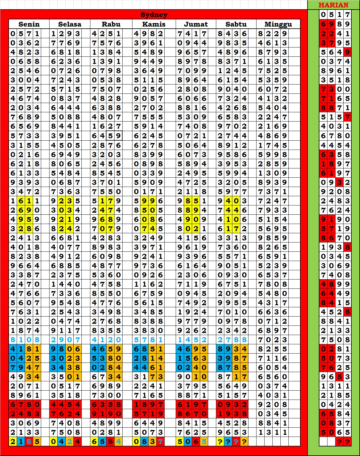 | TABEL DATA SYDNEY 6D VERSI HARIAN |