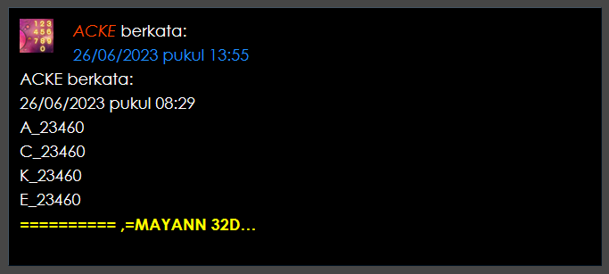 semua postingan komentar SARA, politik, saling menghujat serta saling merendahkan antara prediktor satu dengan yang lainnya jika kami lagi OL mohon maaf langsung kami hapus dan jika telah diperingatkan masih mengulang kami lock datanya