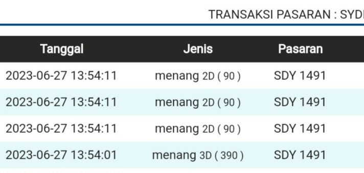 | TABEL DATA SYDNEY 6D VERSI HARIAN |