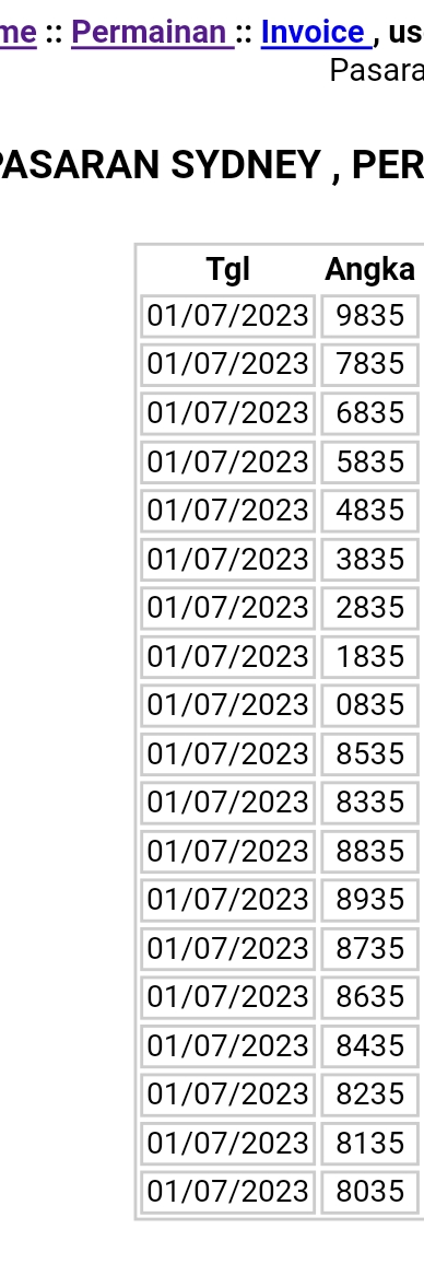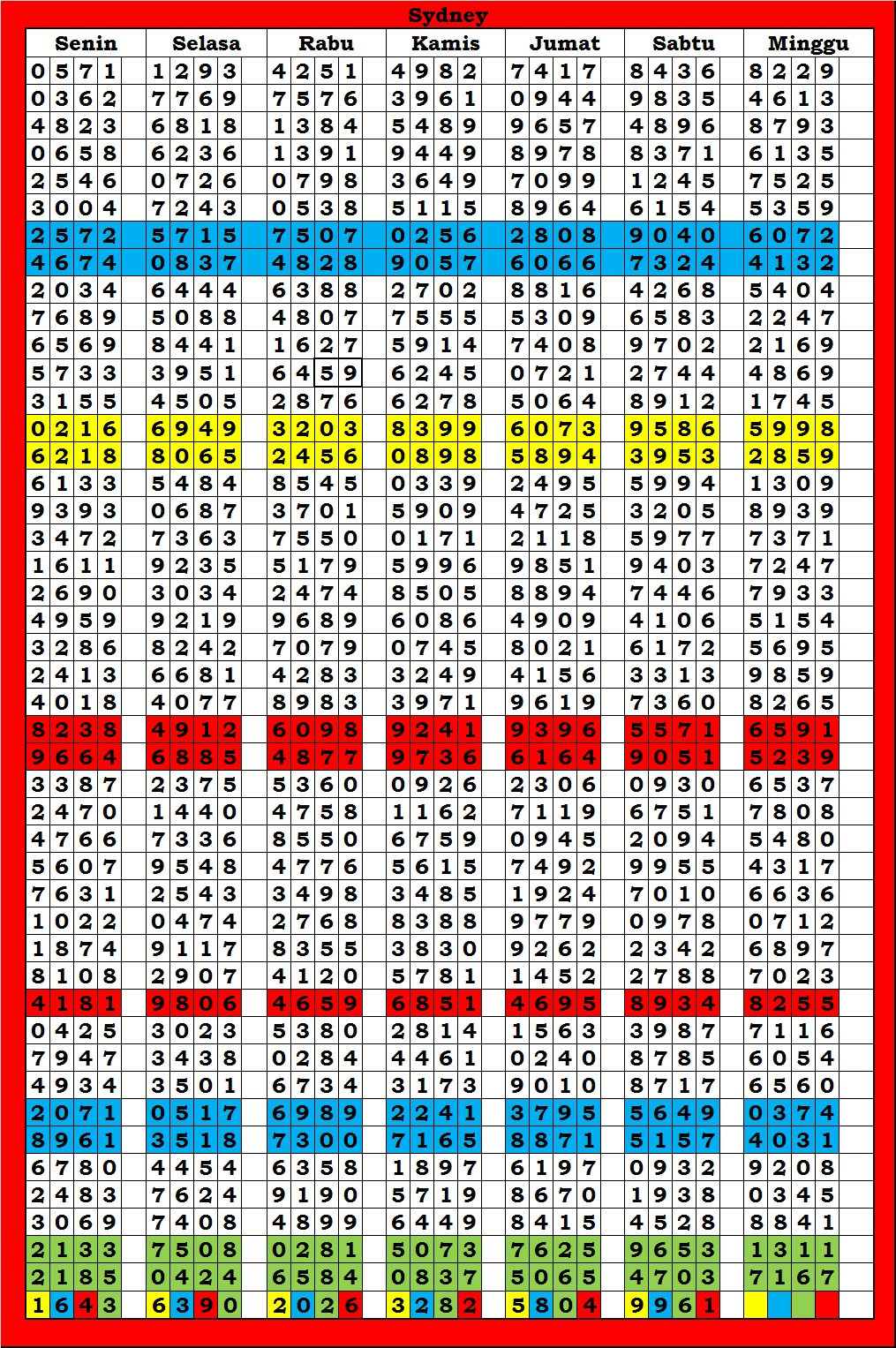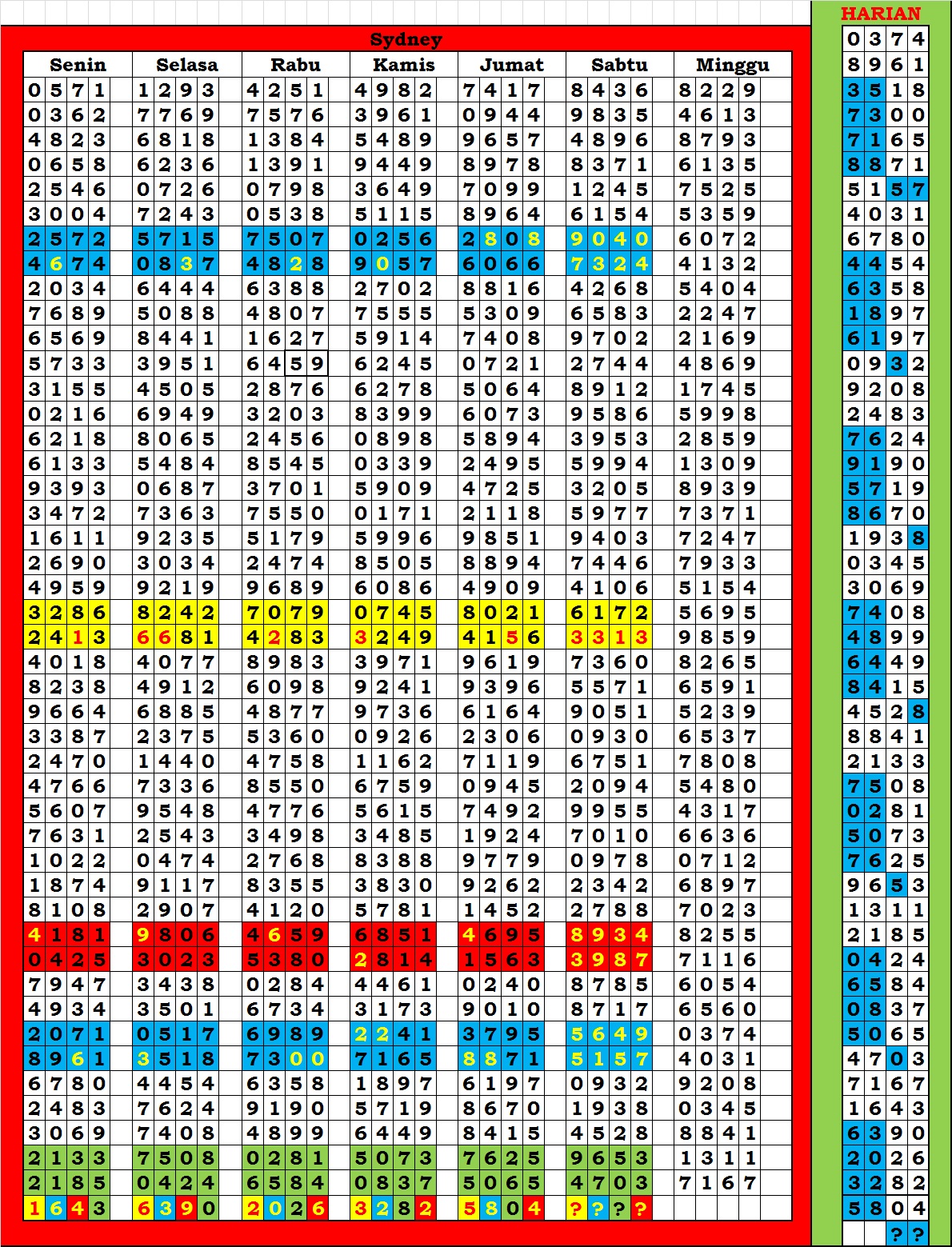 | TABEL DATA SYDNEY 6D VERSI HARIAN |