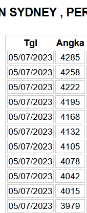 | TABEL DATA SYDNEY 6D VERSI HARIAN |