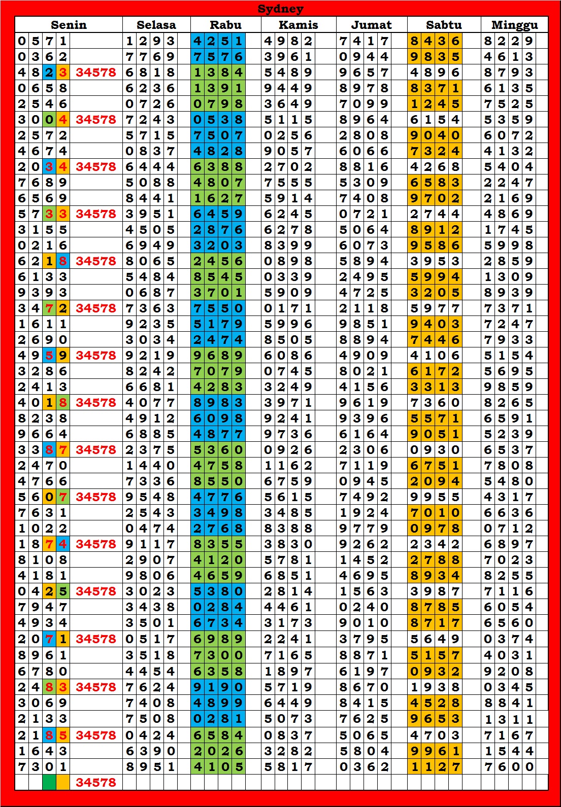 | TABEL DATA SYDNEY 6D VERSI HARIAN |