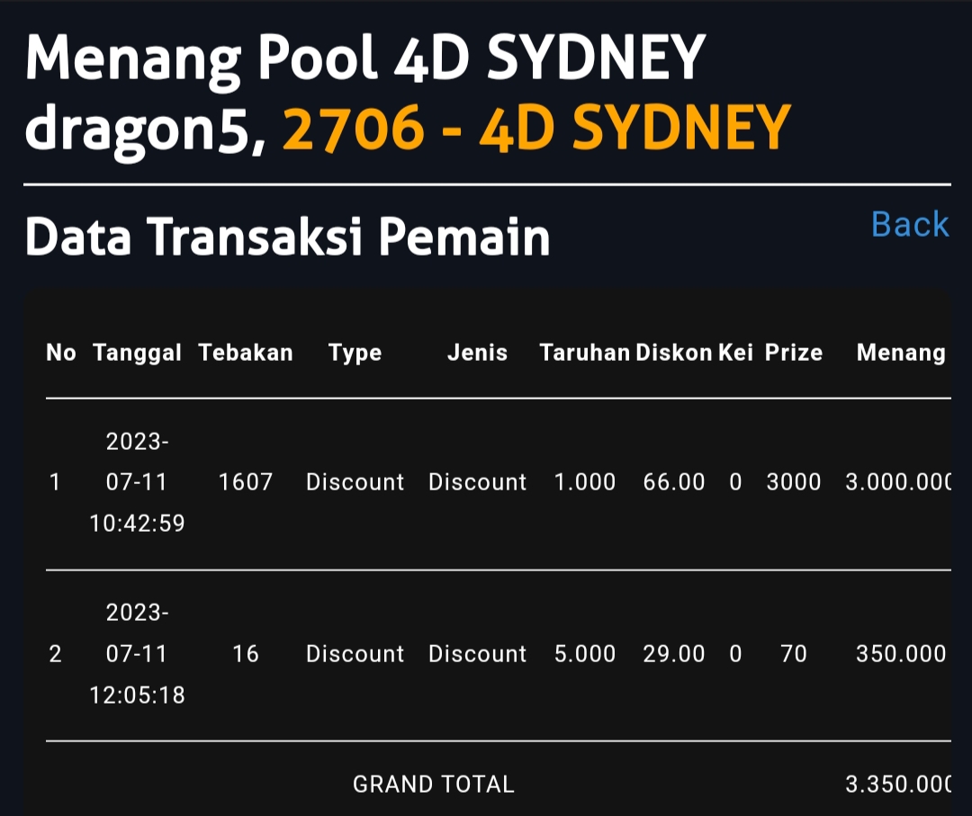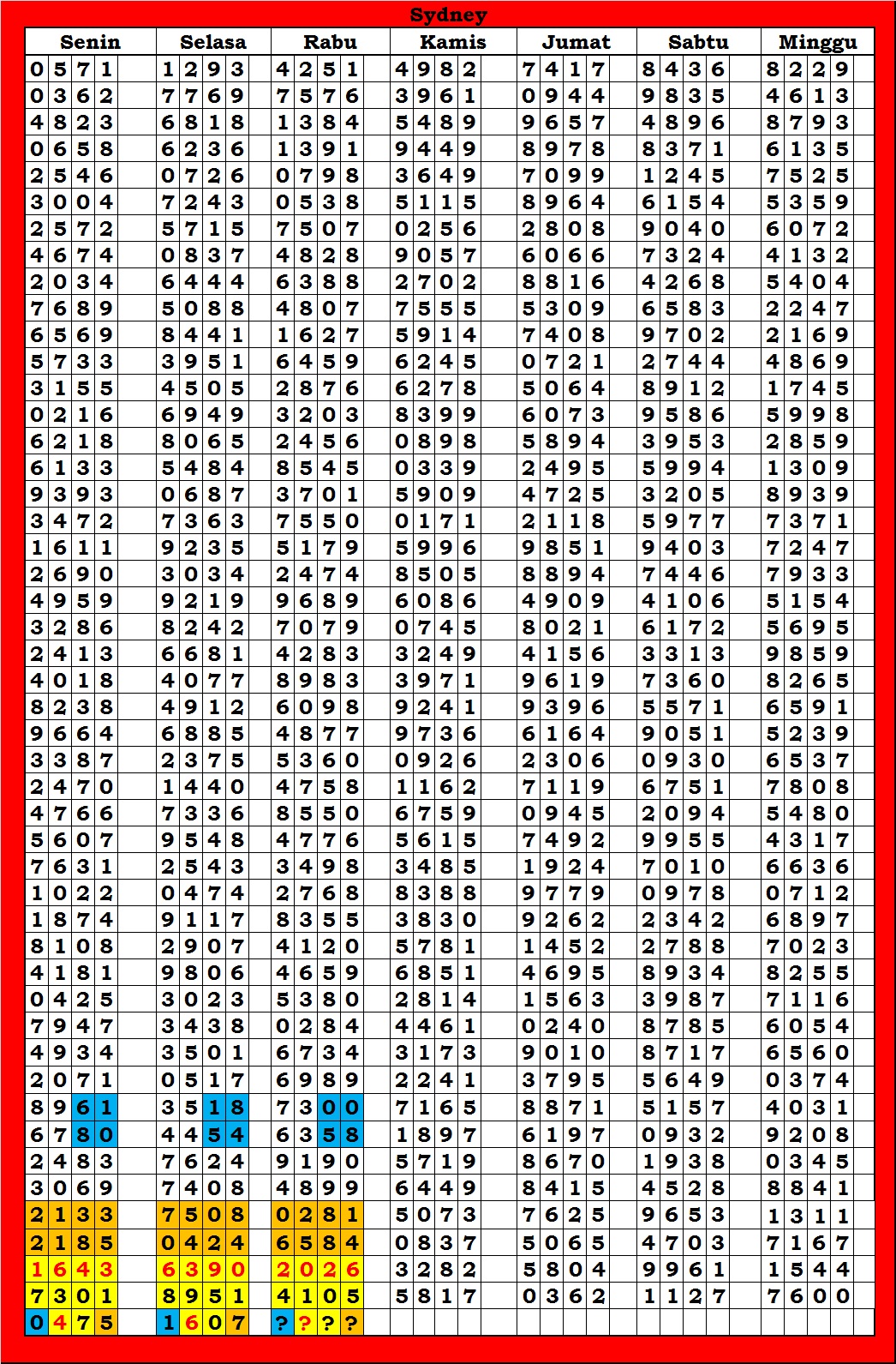 | TABEL DATA SYDNEY 6D VERSI HARIAN |