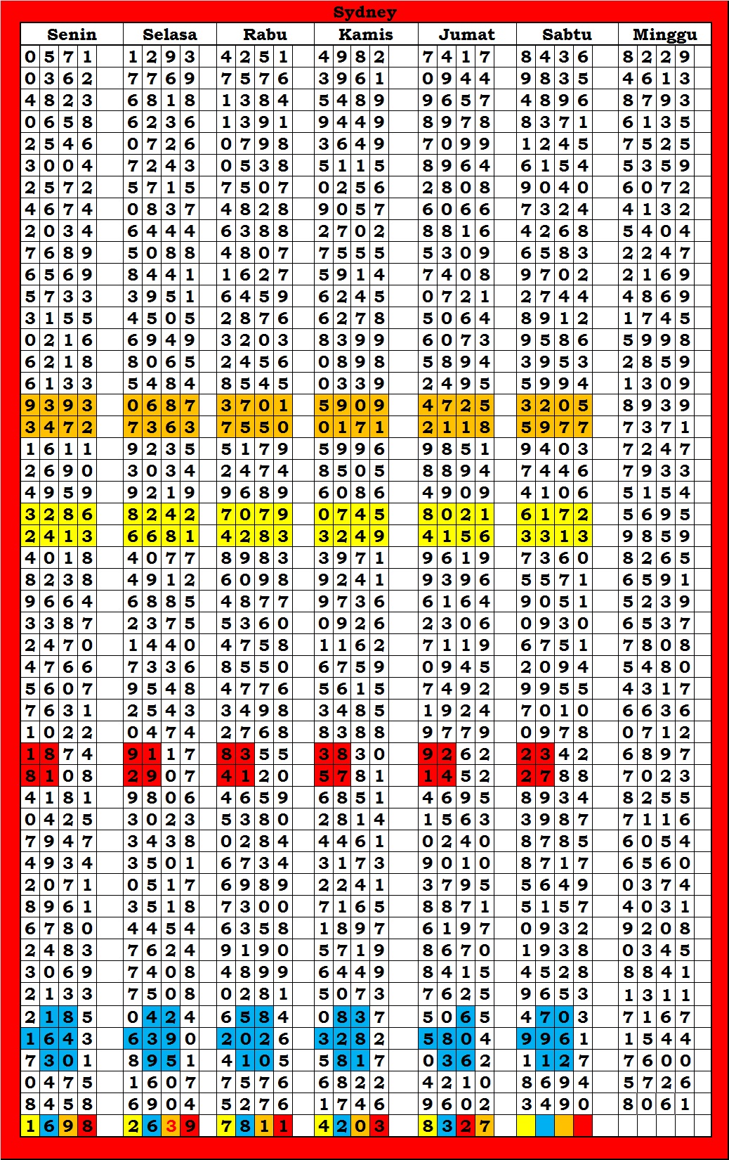 | TABEL DATA SYDNEY 6D VERSI HARIAN |