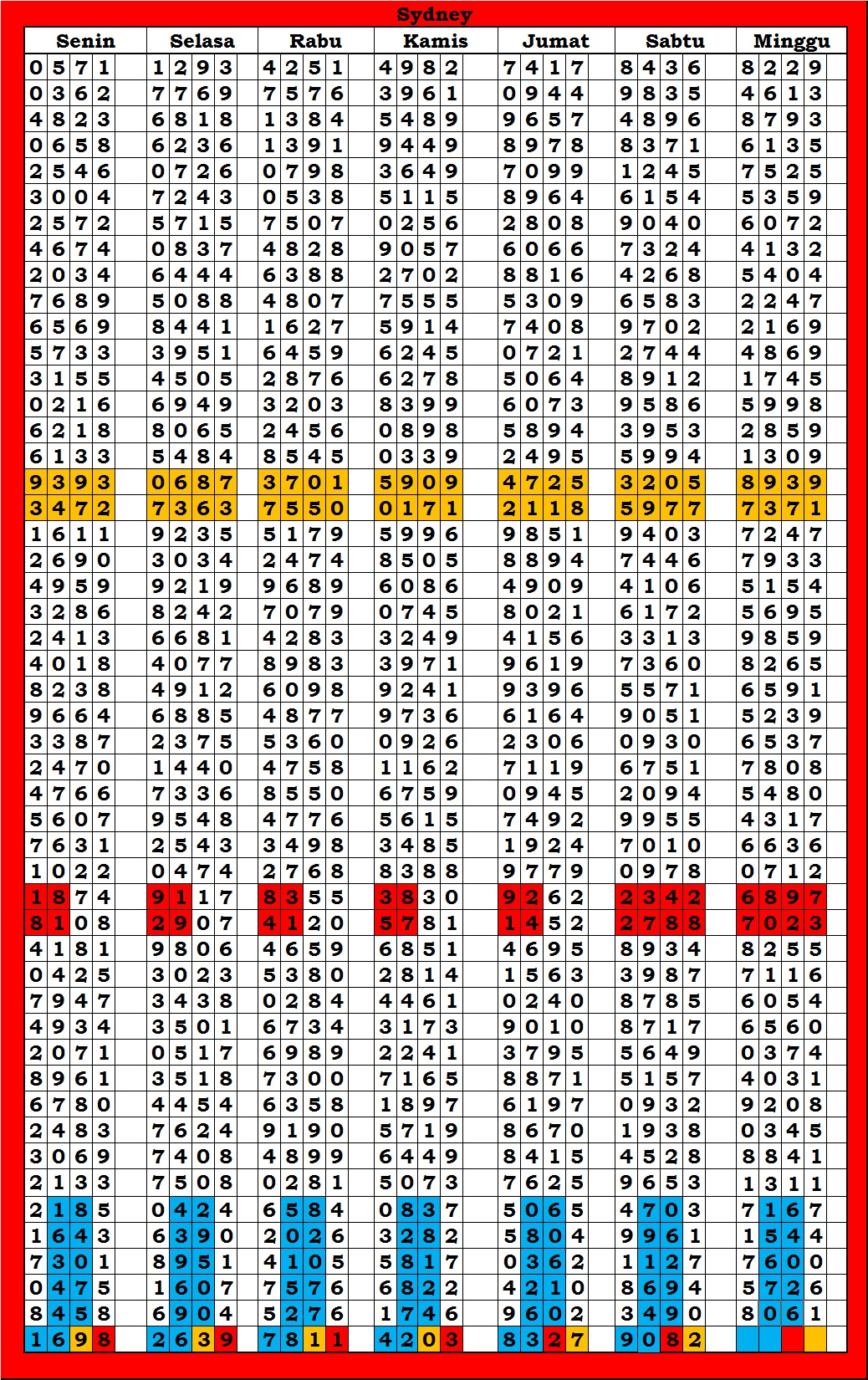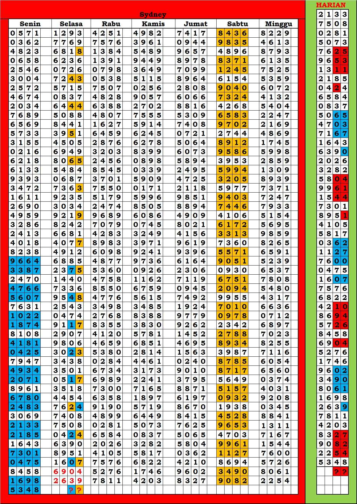 | TABEL DATA SYDNEY 6D VERSI HARIAN |