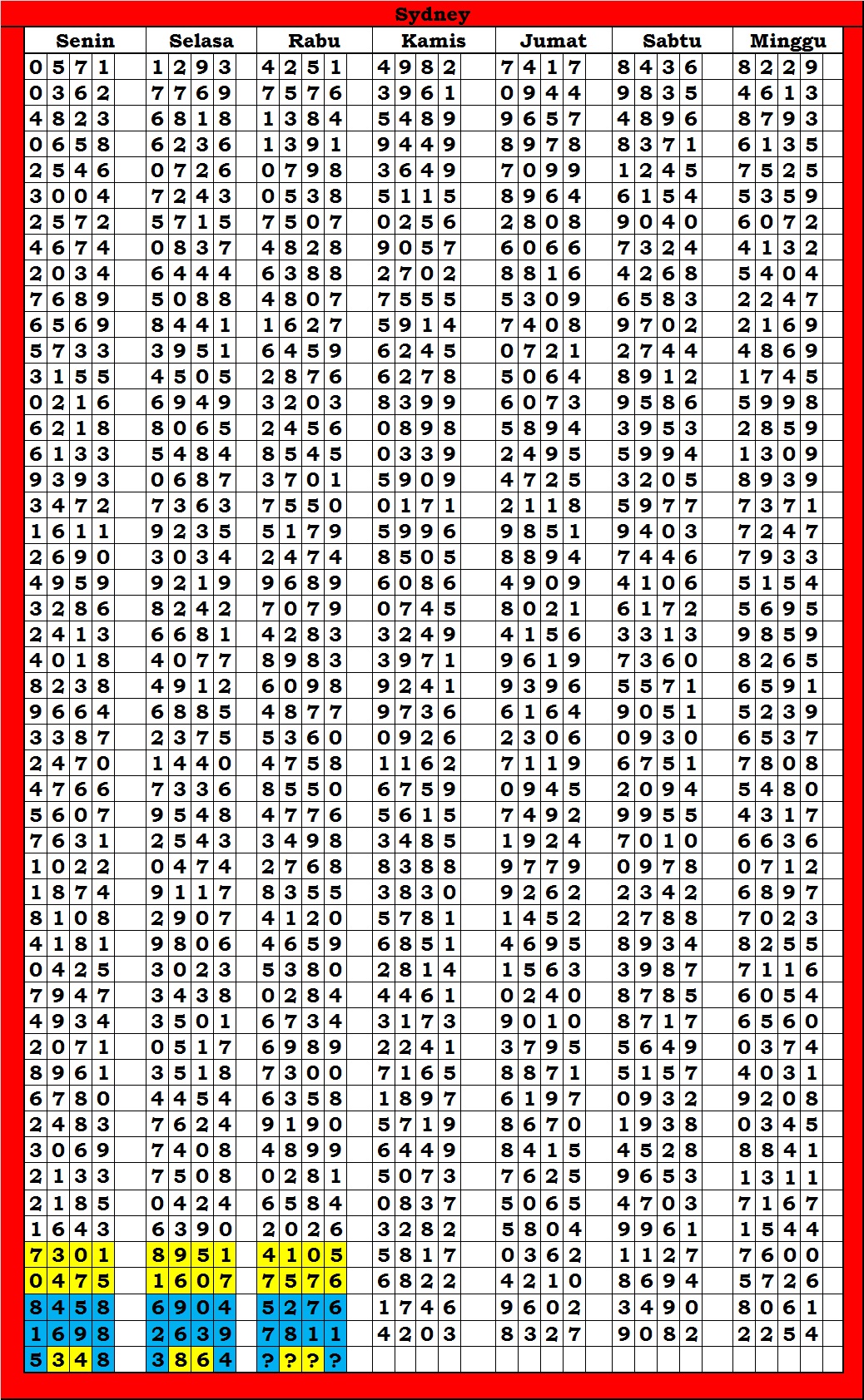 | TABEL DATA SYDNEY 6D VERSI HARIAN |