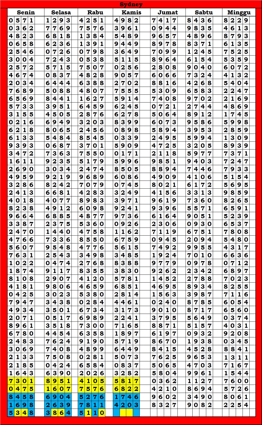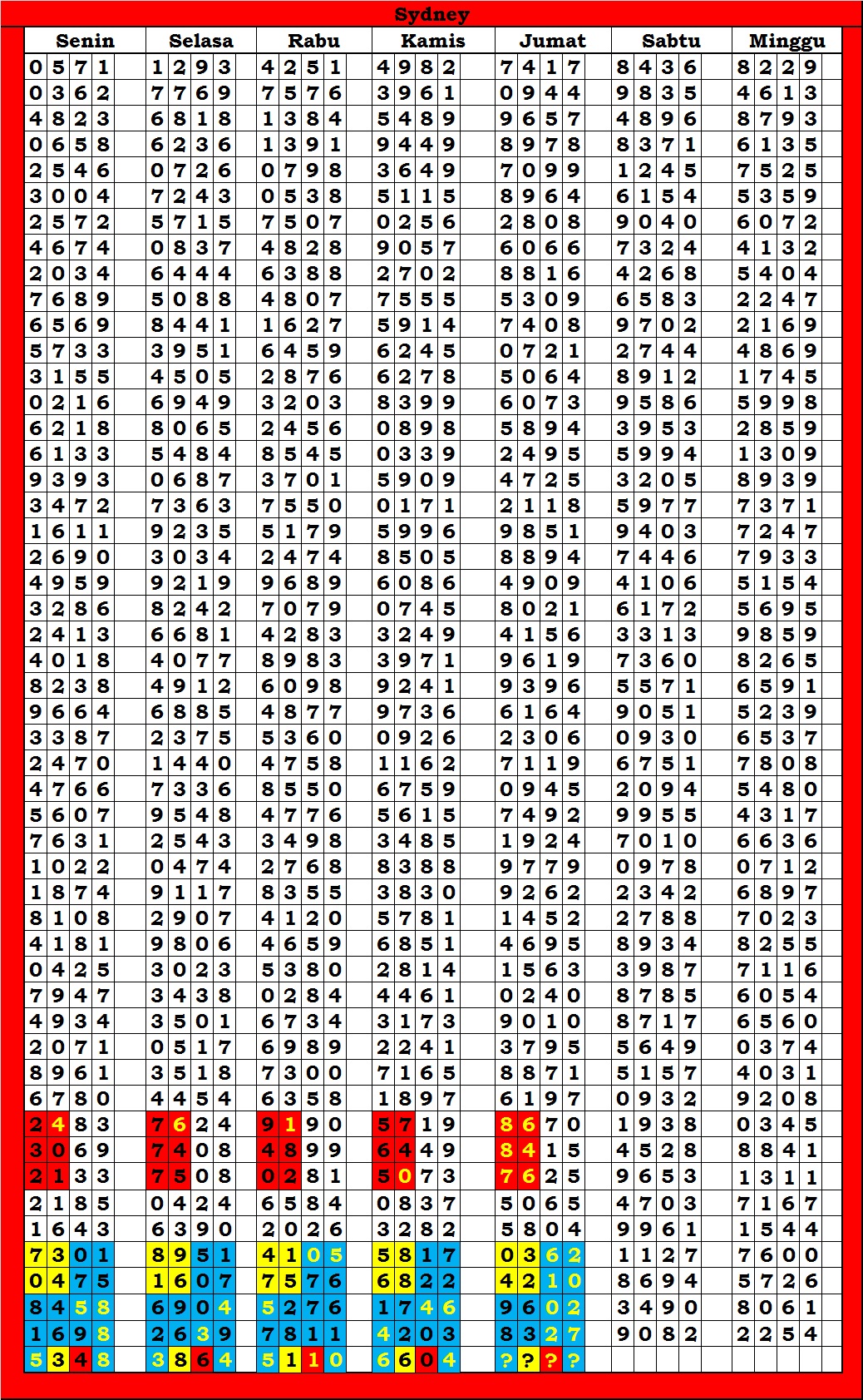 | TABEL DATA SYDNEY 6D VERSI HARIAN |