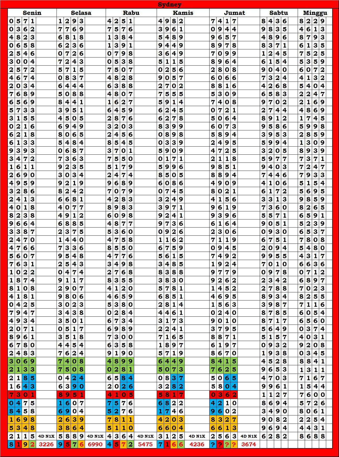 | TABEL DATA SYDNEY 6D VERSI HARIAN |