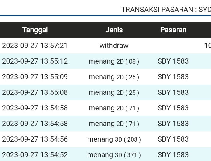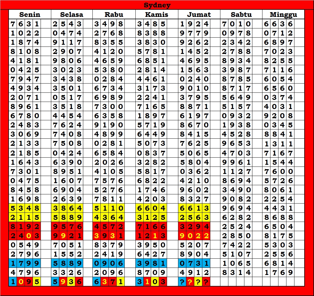 | TABEL DATA SYDNEY 6D VERSI HARIAN |
