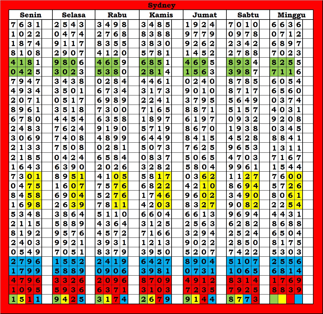| TABEL DATA SYDNEY 6D VERSI HARIAN |