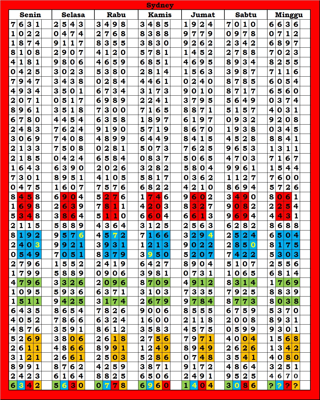 | TABEL DATA SYDNEY 6D VERSI HARIAN |