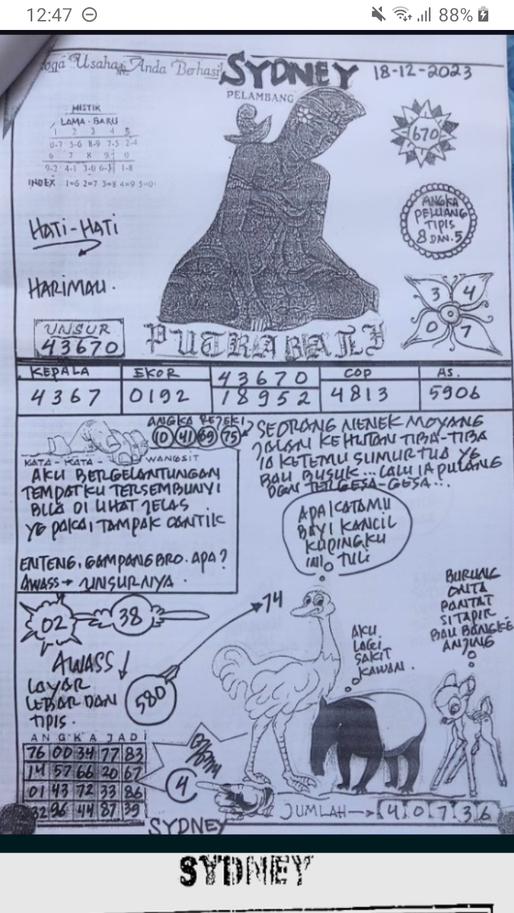 MASTER SYDNEY Jumat, 12-12-2025 Merupakan Prediksi Otomatis yang menggabungkan Metode Kalender Togel Dengan Rumus-rumus kontrol yang sudah terbukti keakuratanya.Gunakan Aplikasi Rekap untuk mendapatkan LN TOP. Harap Maklum Jika kadang meleset MASTER SYDNEY kita. Jadikan ini sebagai perbandingan saja dan tetap UPS