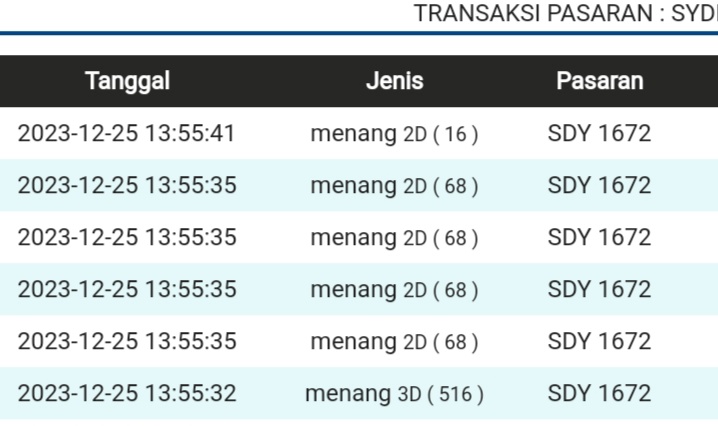 MASTER SYDNEY Jumat, 12-12-2025 Merupakan Prediksi Otomatis yang menggabungkan Metode Kalender Togel Dengan Rumus-rumus kontrol yang sudah terbukti keakuratanya.Gunakan Aplikasi Rekap untuk mendapatkan LN TOP. Harap Maklum Jika kadang meleset MASTER SYDNEY kita. Jadikan ini sebagai perbandingan saja dan tetap UPS