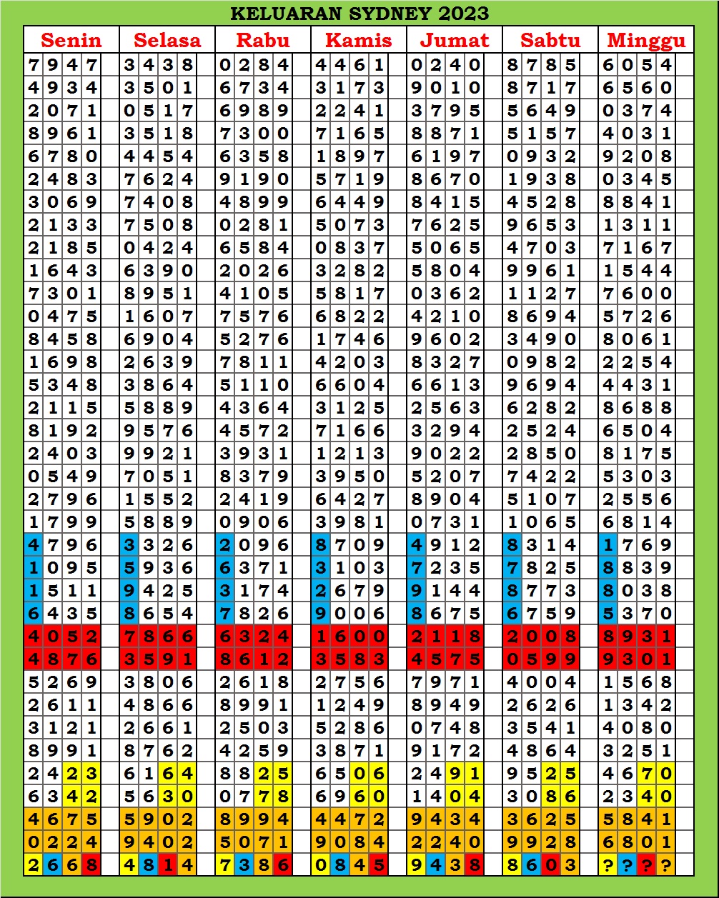 | TABEL DATA SYDNEY 6D VERSI HARIAN |