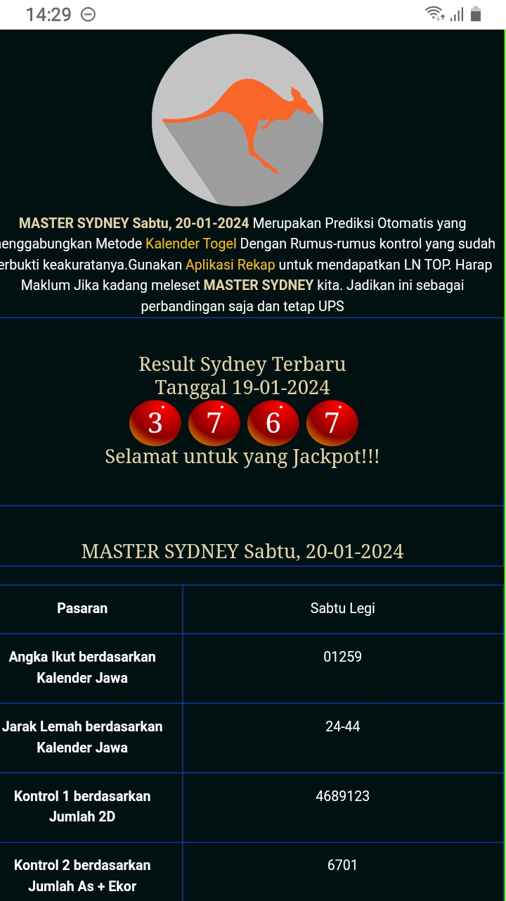 | TABEL DATA SYDNEY 6D VERSI HARIAN |