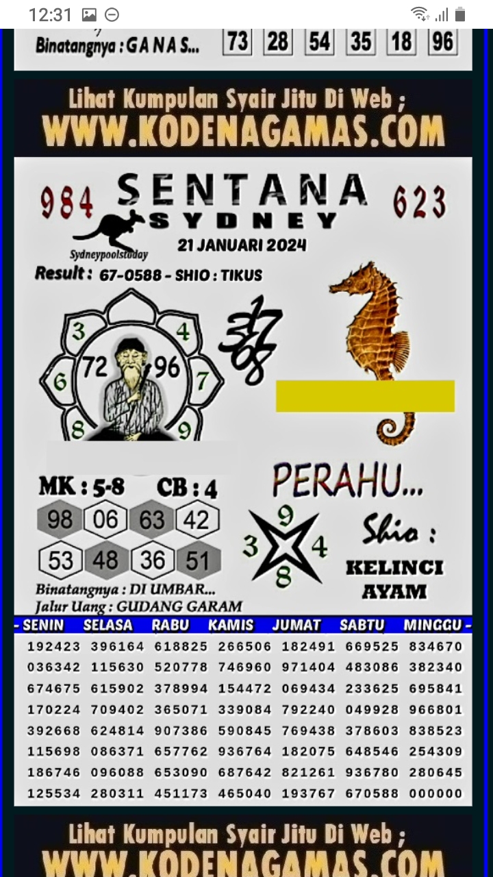 | TABEL DATA SYDNEY 6D VERSI HARIAN |