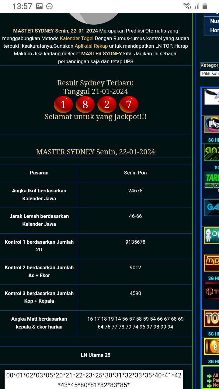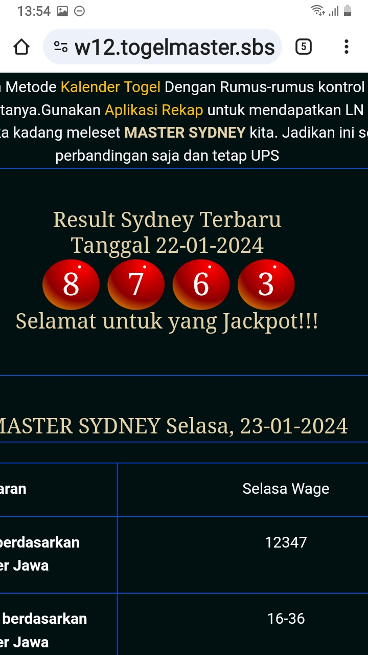 MASTER SYDNEY Jumat, 12-12-2025 Merupakan Prediksi Otomatis yang menggabungkan Metode Kalender Togel Dengan Rumus-rumus kontrol yang sudah terbukti keakuratanya.Gunakan Aplikasi Rekap untuk mendapatkan LN TOP. Harap Maklum Jika kadang meleset MASTER SYDNEY kita. Jadikan ini sebagai perbandingan saja dan tetap UPS
