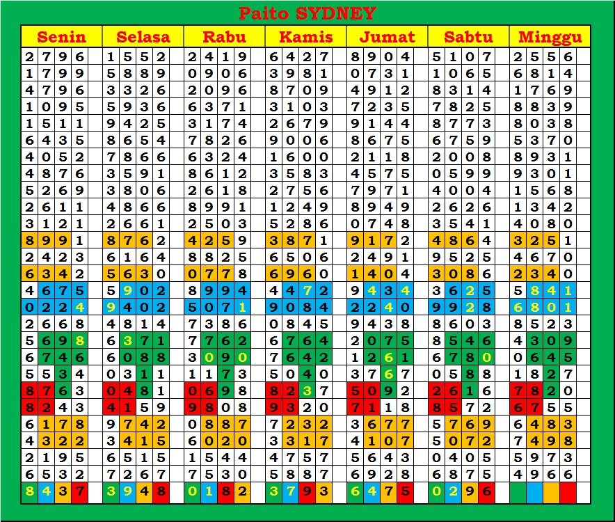 | PAITO WARNA SYDNEY 4D HARIAN |