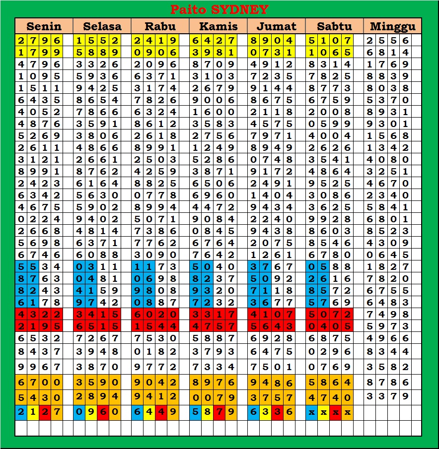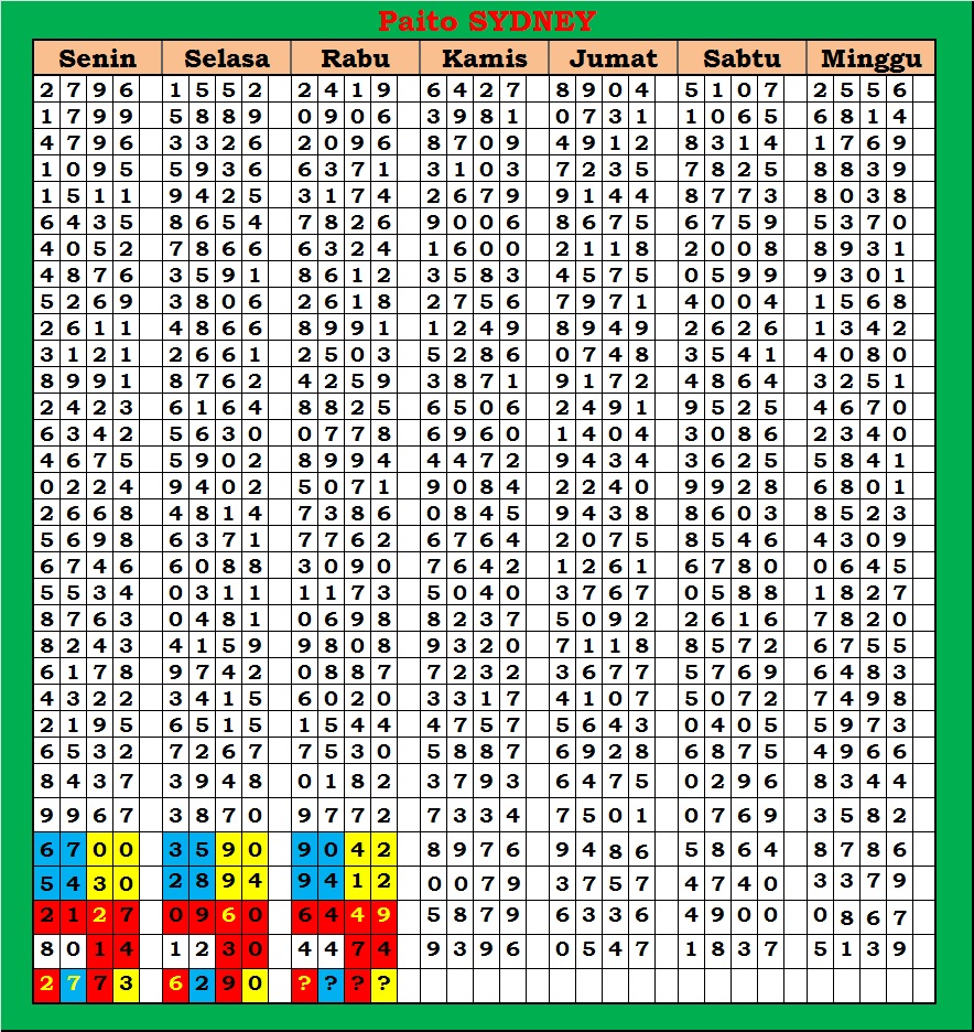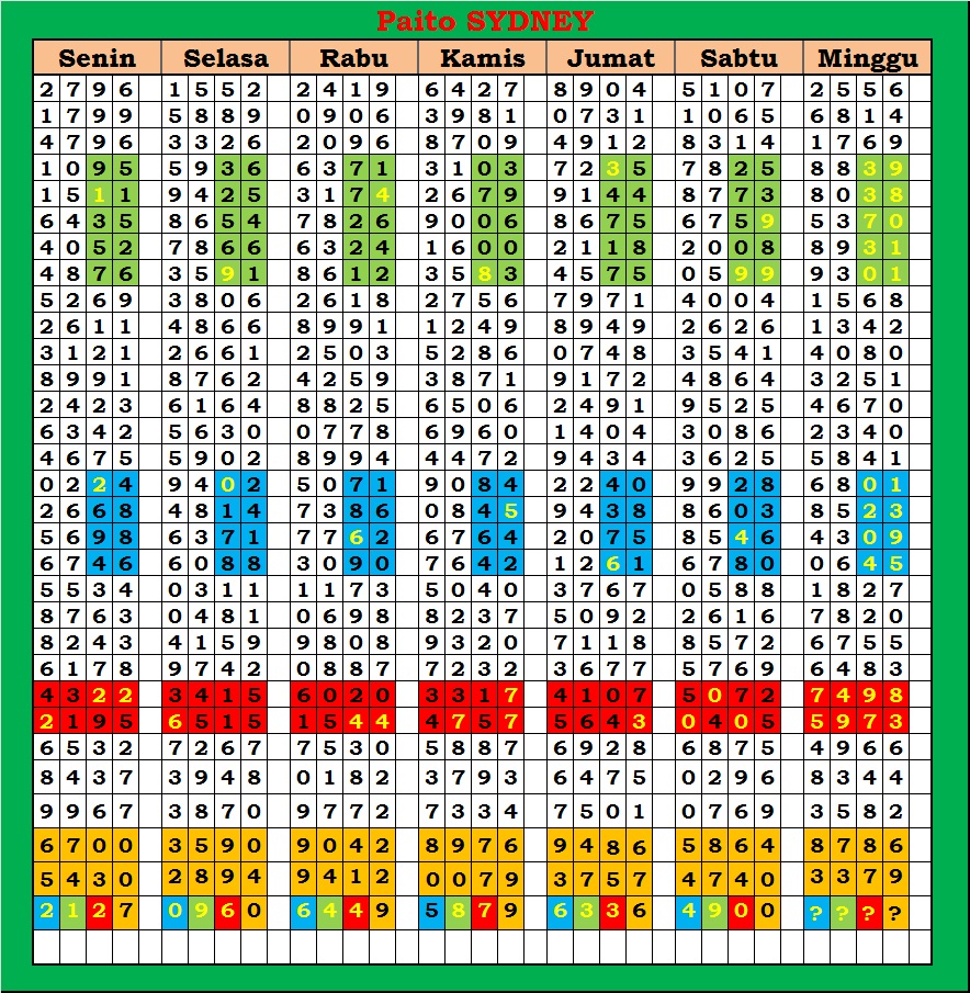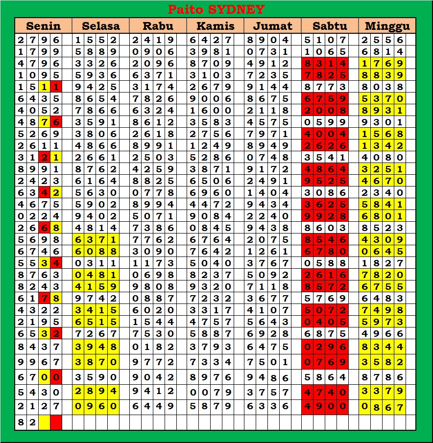 | PAITO WARNA SYDNEY 4D HARIAN |