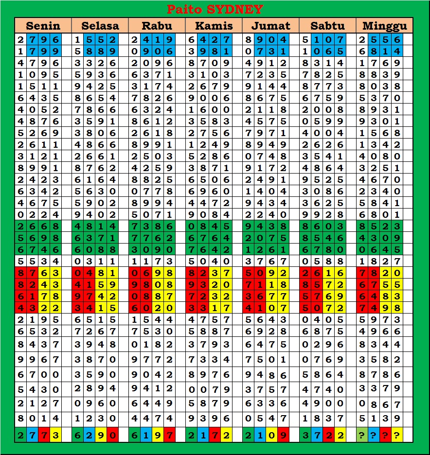 | PAITO WARNA SYDNEY 4D HARIAN |