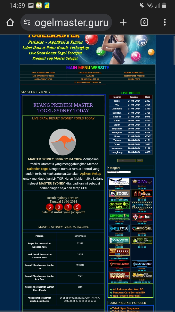 MASTER SYDNEY Rabu, 26-11-2025 Merupakan Prediksi Otomatis yang menggabungkan Metode Kalender Togel Dengan Rumus-rumus kontrol yang sudah terbukti keakuratanya.Gunakan Aplikasi Rekap untuk mendapatkan LN TOP. Harap Maklum Jika kadang meleset MASTER SYDNEY kita. Jadikan ini sebagai perbandingan saja dan tetap UPS