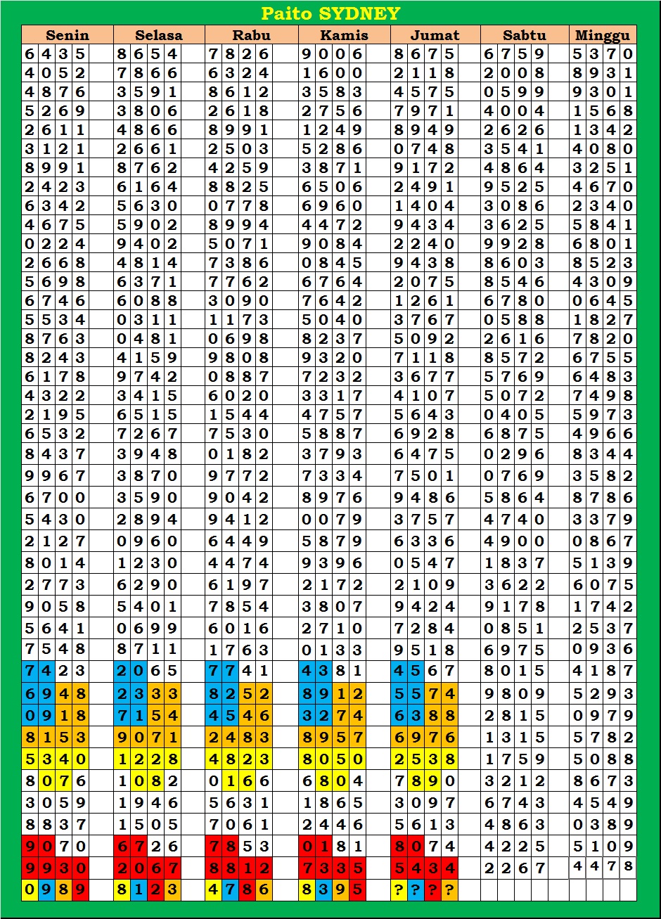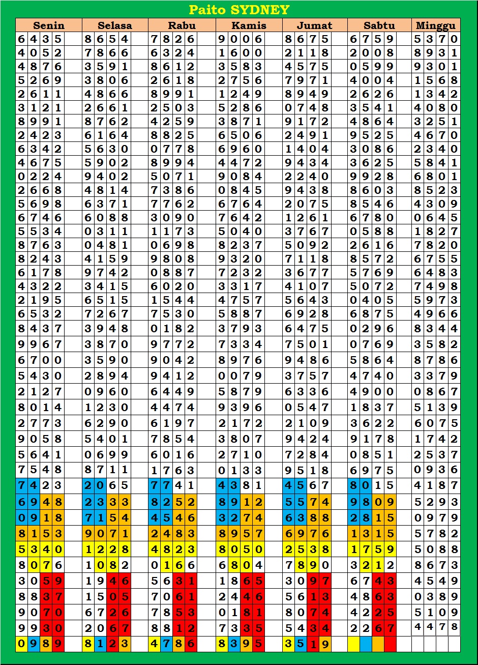 | PAITO WARNA SYDNEY 6D HARIAN |