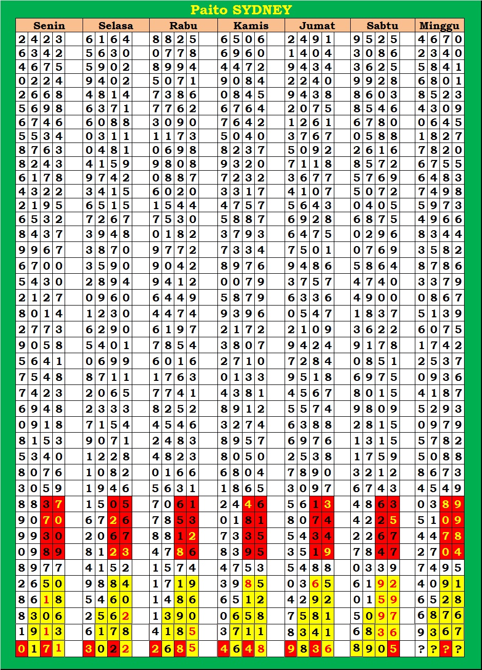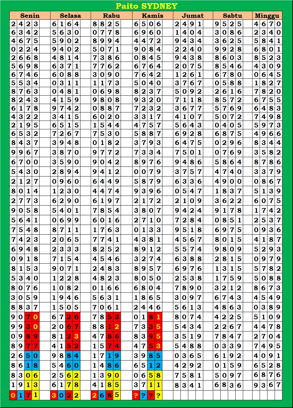 | PAITO WARNA SYDNEY 4D HARIAN |