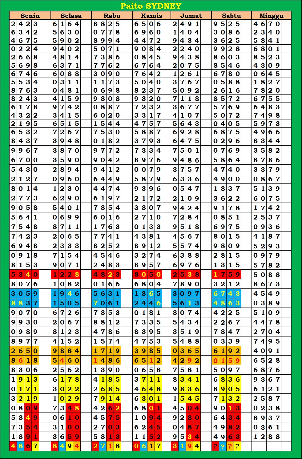 | PAITO WARNA SYDNEY 4D HARIAN |