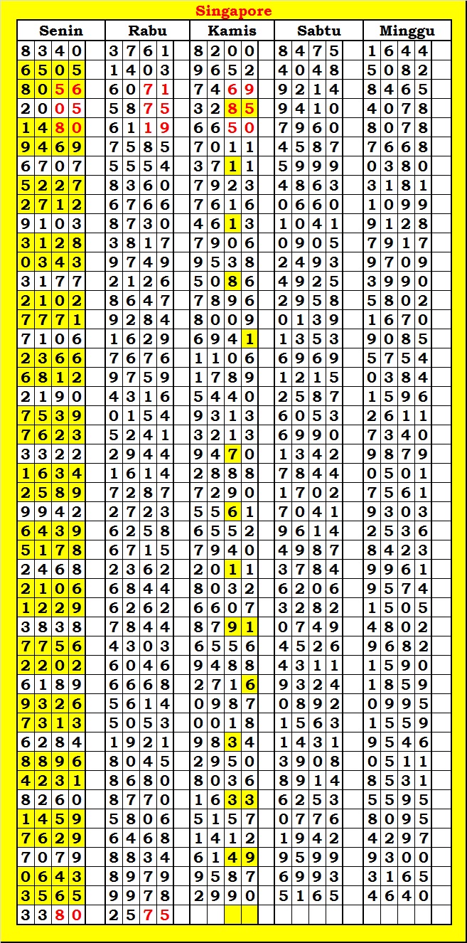 MASTER SINGAPURA Sabtu, 13-12-2025 Merupakan Prediksi Otomatis yang menggabungkan Metode Kalender Togel Dengan Rumus-rumus kontrol yang sudah terbukti keakuratanya.Gunakan Aplikasi Rekap untuk mendapatkan LN TOP. Harap Maklum Jika kadang meleset MASTER SINGAPURA kita. Jadikan ini sebagai perbandingan saja dan tetap UPS