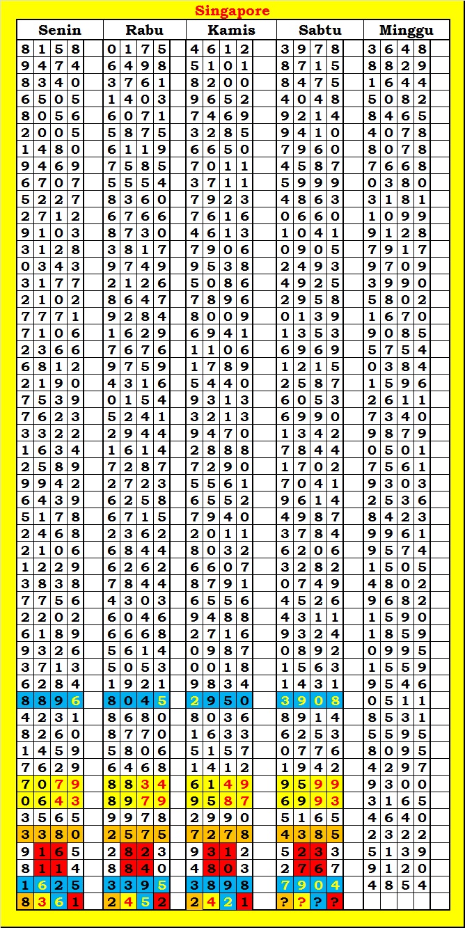 MASTER SINGAPURA Kamis, 11-12-2025 Merupakan Prediksi Otomatis yang menggabungkan Metode Kalender Togel Dengan Rumus-rumus kontrol yang sudah terbukti keakuratanya.Gunakan Aplikasi Rekap untuk mendapatkan LN TOP. Harap Maklum Jika kadang meleset MASTER SINGAPURA kita. Jadikan ini sebagai perbandingan saja dan tetap UPS