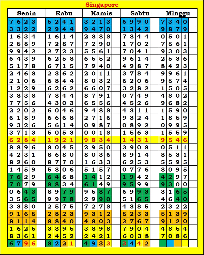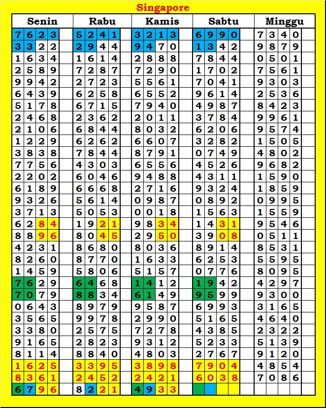 MASTER SINGAPURA Kamis, 11-12-2025 Merupakan Prediksi Otomatis yang menggabungkan Metode Kalender Togel Dengan Rumus-rumus kontrol yang sudah terbukti keakuratanya.Gunakan Aplikasi Rekap untuk mendapatkan LN TOP. Harap Maklum Jika kadang meleset MASTER SINGAPURA kita. Jadikan ini sebagai perbandingan saja dan tetap UPS