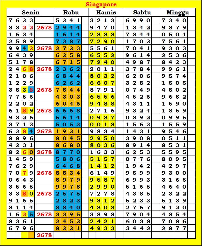 MASTER SINGAPURA Kamis, 11-12-2025 Merupakan Prediksi Otomatis yang menggabungkan Metode Kalender Togel Dengan Rumus-rumus kontrol yang sudah terbukti keakuratanya.Gunakan Aplikasi Rekap untuk mendapatkan LN TOP. Harap Maklum Jika kadang meleset MASTER SINGAPURA kita. Jadikan ini sebagai perbandingan saja dan tetap UPS