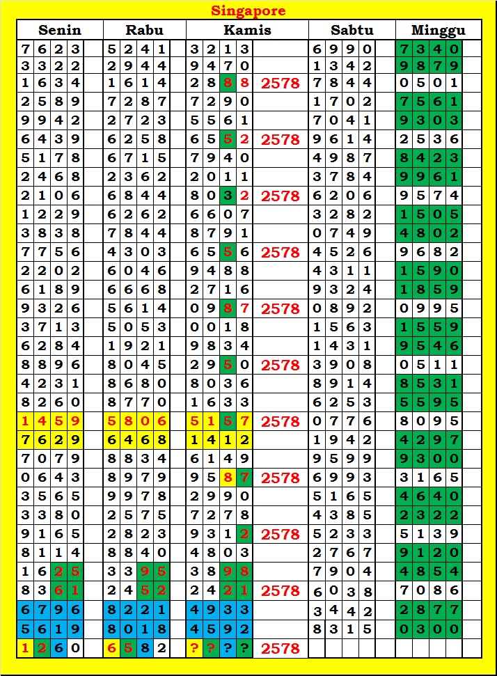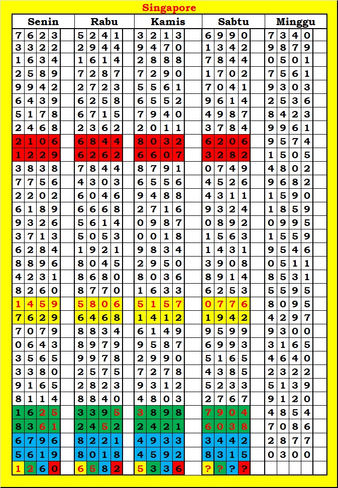 MASTER SINGAPURA Kamis, 11-12-2025 Merupakan Prediksi Otomatis yang menggabungkan Metode Kalender Togel Dengan Rumus-rumus kontrol yang sudah terbukti keakuratanya.Gunakan Aplikasi Rekap untuk mendapatkan LN TOP. Harap Maklum Jika kadang meleset MASTER SINGAPURA kita. Jadikan ini sebagai perbandingan saja dan tetap UPS