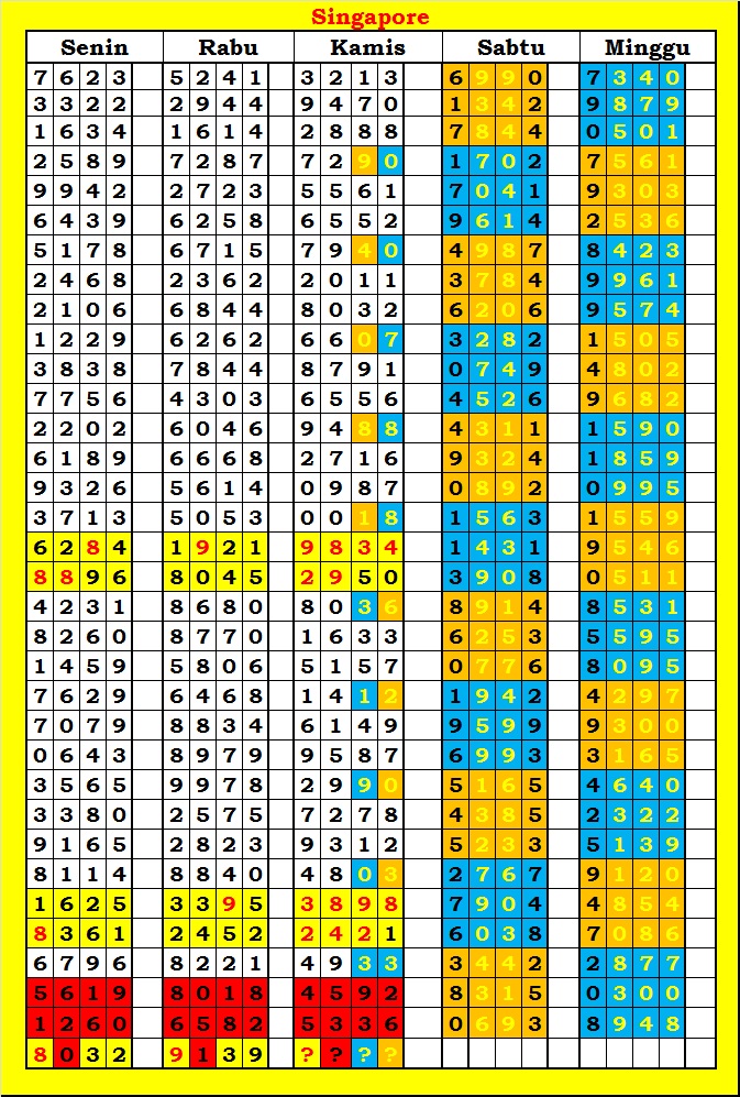 MASTER SINGAPURA Kamis, 11-12-2025 Merupakan Prediksi Otomatis yang menggabungkan Metode Kalender Togel Dengan Rumus-rumus kontrol yang sudah terbukti keakuratanya.Gunakan Aplikasi Rekap untuk mendapatkan LN TOP. Harap Maklum Jika kadang meleset MASTER SINGAPURA kita. Jadikan ini sebagai perbandingan saja dan tetap UPS