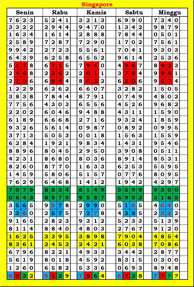 MASTER SINGAPURA Kamis, 11-12-2025 Merupakan Prediksi Otomatis yang menggabungkan Metode Kalender Togel Dengan Rumus-rumus kontrol yang sudah terbukti keakuratanya.Gunakan Aplikasi Rekap untuk mendapatkan LN TOP. Harap Maklum Jika kadang meleset MASTER SINGAPURA kita. Jadikan ini sebagai perbandingan saja dan tetap UPS