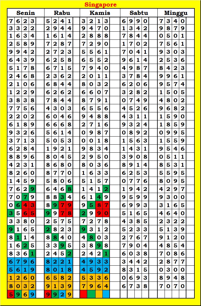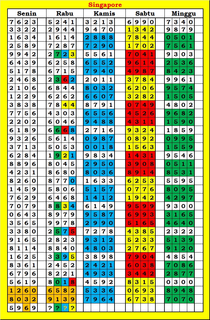 MASTER SINGAPURA Kamis, 11-12-2025 Merupakan Prediksi Otomatis yang menggabungkan Metode Kalender Togel Dengan Rumus-rumus kontrol yang sudah terbukti keakuratanya.Gunakan Aplikasi Rekap untuk mendapatkan LN TOP. Harap Maklum Jika kadang meleset MASTER SINGAPURA kita. Jadikan ini sebagai perbandingan saja dan tetap UPS