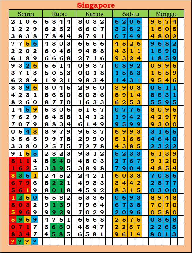 MASTER SINGAPURA Rabu, 24-12-2025 Merupakan Prediksi Otomatis yang menggabungkan Metode Kalender Togel Dengan Rumus-rumus kontrol yang sudah terbukti keakuratanya.Gunakan Aplikasi Rekap untuk mendapatkan LN TOP. Harap Maklum Jika kadang meleset MASTER SINGAPURA kita. Jadikan ini sebagai perbandingan saja dan tetap UPS