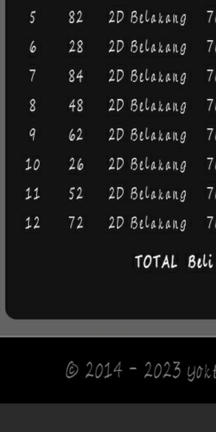 Prediksi Ini Berubah secara otomatis sesuai hari dan result pasaran masing-masing. Untuk melihat prediksi sebelumnya klik tombol nomor hitam diatas
