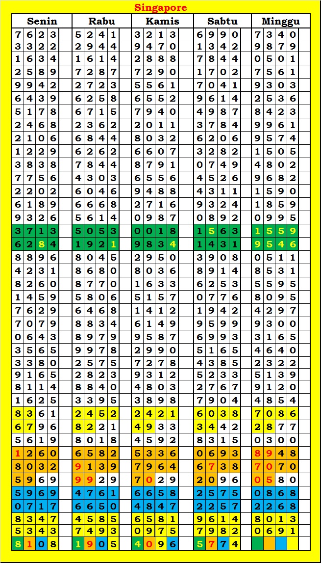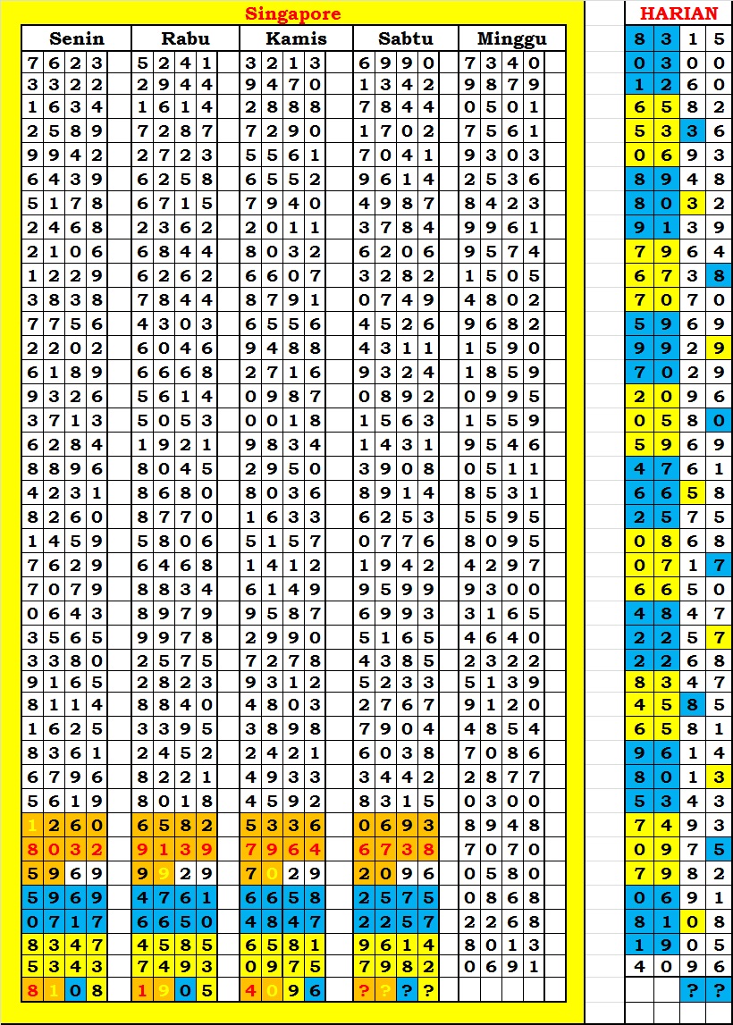 MASTER SINGAPURA Rabu, 24-12-2025 Merupakan Prediksi Otomatis yang menggabungkan Metode Kalender Togel Dengan Rumus-rumus kontrol yang sudah terbukti keakuratanya.Gunakan Aplikasi Rekap untuk mendapatkan LN TOP. Harap Maklum Jika kadang meleset MASTER SINGAPURA kita. Jadikan ini sebagai perbandingan saja dan tetap UPS