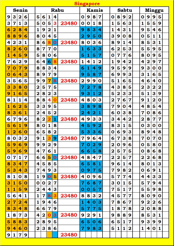 MASTER SINGAPURA Senin, 22-12-2025 Merupakan Prediksi Otomatis yang menggabungkan Metode Kalender Togel Dengan Rumus-rumus kontrol yang sudah terbukti keakuratanya.Gunakan Aplikasi Rekap untuk mendapatkan LN TOP. Harap Maklum Jika kadang meleset MASTER SINGAPURA kita. Jadikan ini sebagai perbandingan saja dan tetap UPS