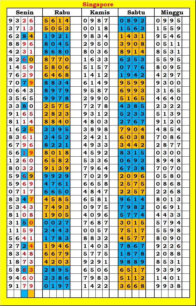 MASTER SINGAPURA Senin, 22-12-2025 Merupakan Prediksi Otomatis yang menggabungkan Metode Kalender Togel Dengan Rumus-rumus kontrol yang sudah terbukti keakuratanya.Gunakan Aplikasi Rekap untuk mendapatkan LN TOP. Harap Maklum Jika kadang meleset MASTER SINGAPURA kita. Jadikan ini sebagai perbandingan saja dan tetap UPS