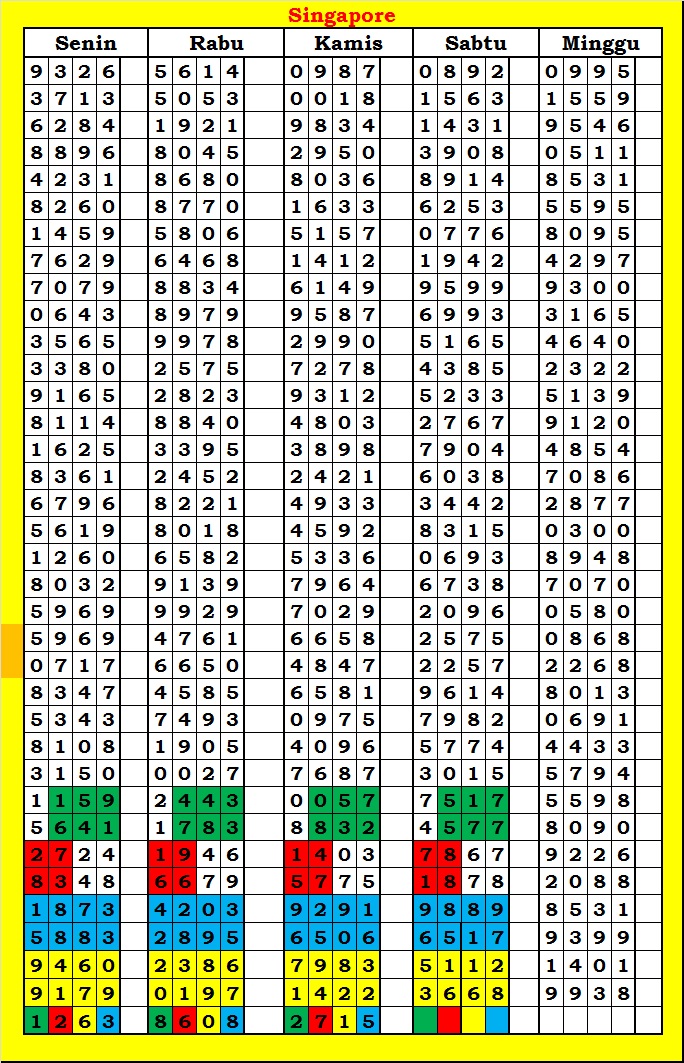 MASTER SINGAPURA Senin, 22-12-2025 Merupakan Prediksi Otomatis yang menggabungkan Metode Kalender Togel Dengan Rumus-rumus kontrol yang sudah terbukti keakuratanya.Gunakan Aplikasi Rekap untuk mendapatkan LN TOP. Harap Maklum Jika kadang meleset MASTER SINGAPURA kita. Jadikan ini sebagai perbandingan saja dan tetap UPS