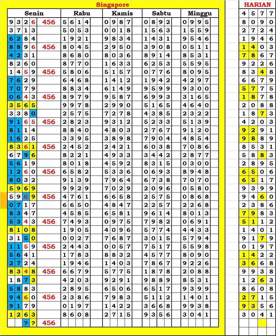 MASTER SINGAPURA Minggu, 07-12-2025 Merupakan Prediksi Otomatis yang menggabungkan Metode Kalender Togel Dengan Rumus-rumus kontrol yang sudah terbukti keakuratanya.Gunakan Aplikasi Rekap untuk mendapatkan LN TOP. Harap Maklum Jika kadang meleset MASTER SINGAPURA kita. Jadikan ini sebagai perbandingan saja dan tetap UPS