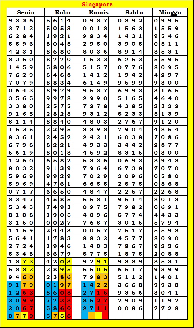 MASTER SINGAPURA Sabtu, 20-12-2025 Merupakan Prediksi Otomatis yang menggabungkan Metode Kalender Togel Dengan Rumus-rumus kontrol yang sudah terbukti keakuratanya.Gunakan Aplikasi Rekap untuk mendapatkan LN TOP. Harap Maklum Jika kadang meleset MASTER SINGAPURA kita. Jadikan ini sebagai perbandingan saja dan tetap UPS